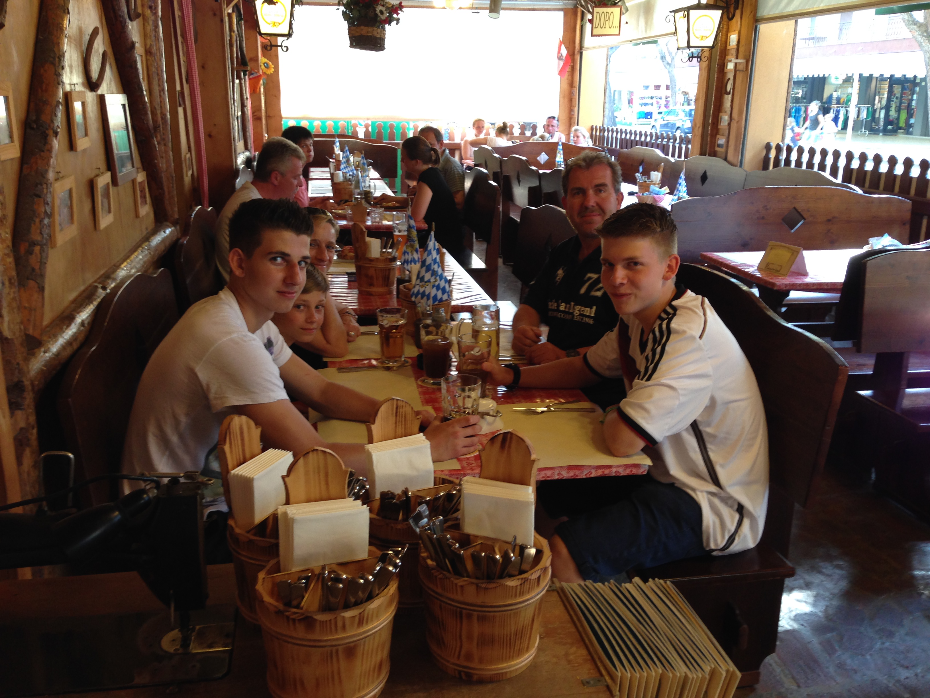 Sie haben eine große Auswahl an typisch bairischen Gerichten, wie Würstel direkt aus Bayern importiert, Schweinebraten, Schweinehaxe, etc. bis hin zum selbstgemachten Apfelstrudel, der mit Vanilleeis oder Vanillesauce serviert wird.